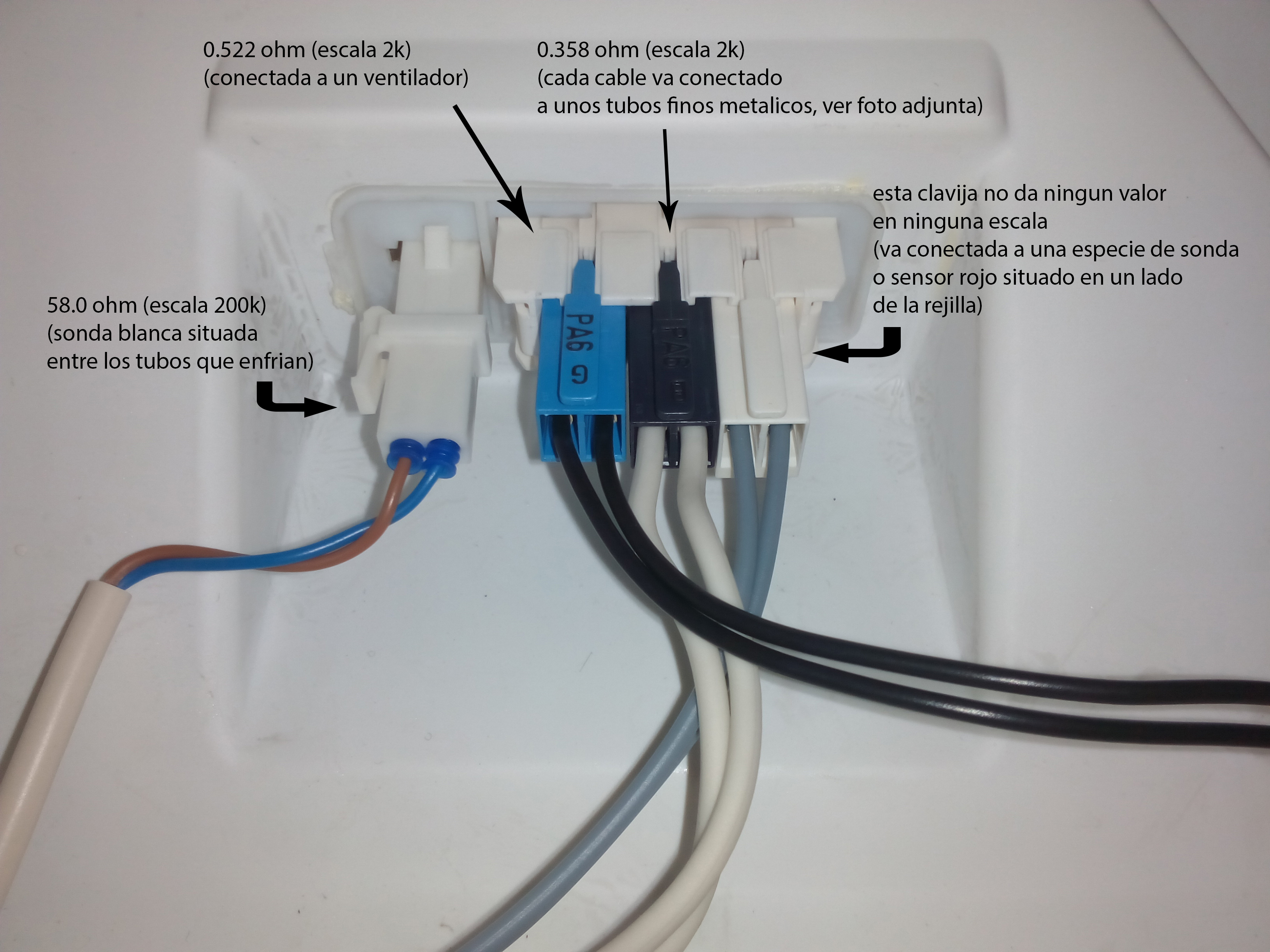 los componentes del frigo, conectores de izquierda a derecha: