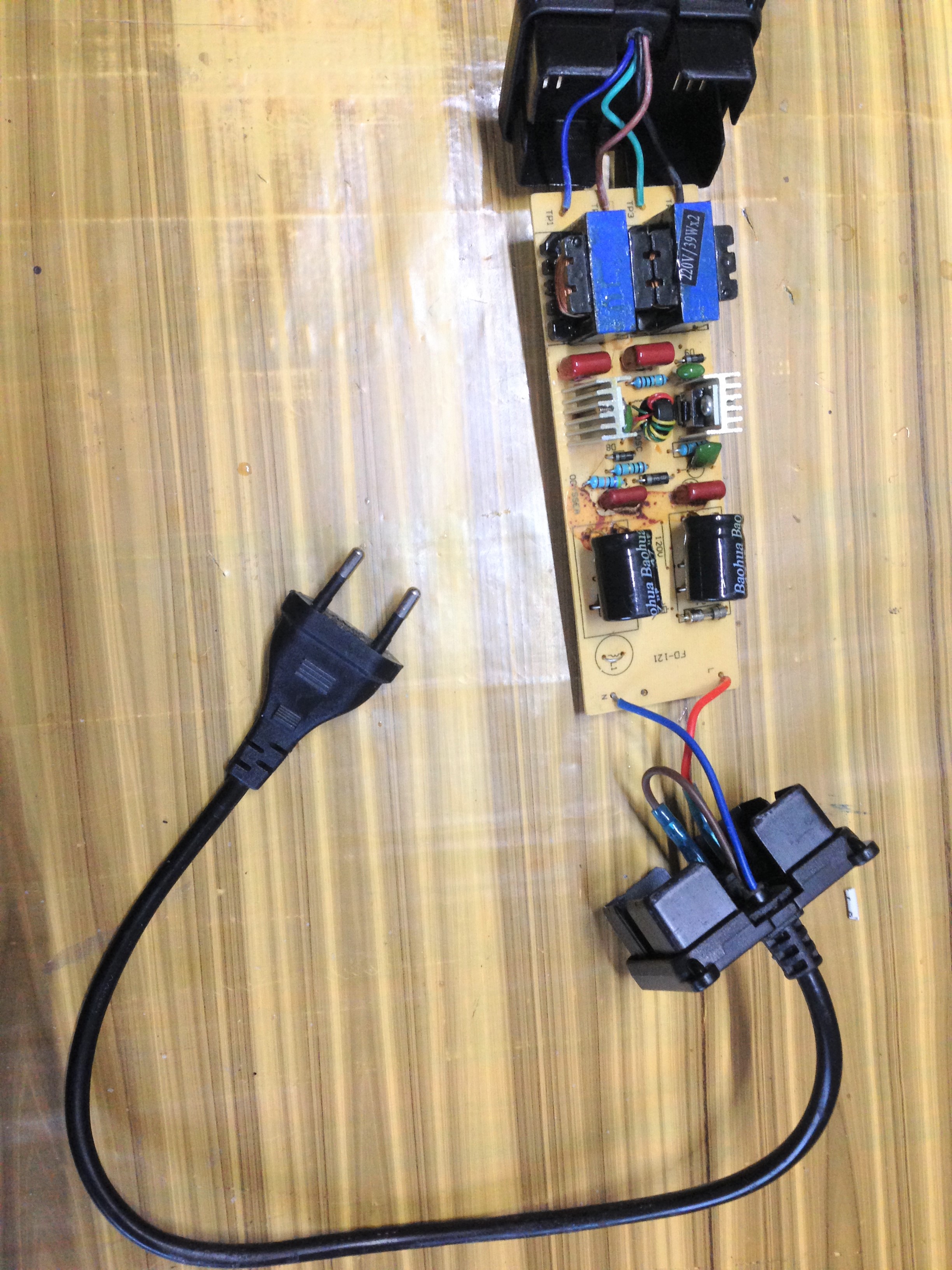 Este es mi balastro, ves que salen cuatro cables que van a la pantalla .lo que quiero saber es como se conexiona en la pantalla.En las fotos de arriba ves como llegan a la pantalla y están los casquillos de las dos lámparas ."eso es lo que quiero saber como se conexionan esos cuatro cables : Azul,marron,verde y negro con los casquillos de los tubos.Mi balastro es de 220v pero no creo que influya ,aunque veo que tienes el cable marrón suelto?
