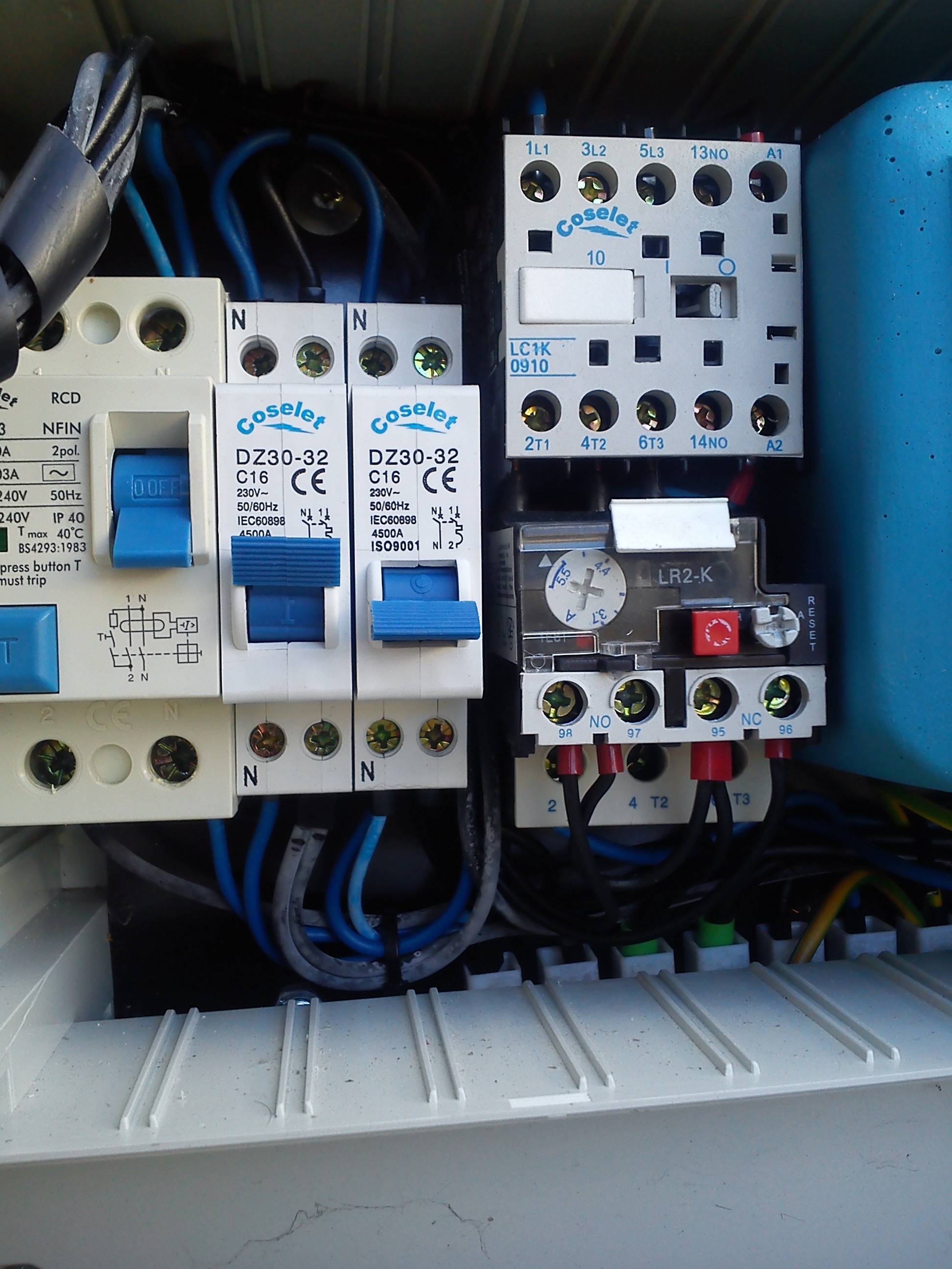 no se si sera algun problema propio del disyuntor, o de otro elemento, contactor etc, la verdad es que no me parece que haya humedad ni este mal la bomba etc