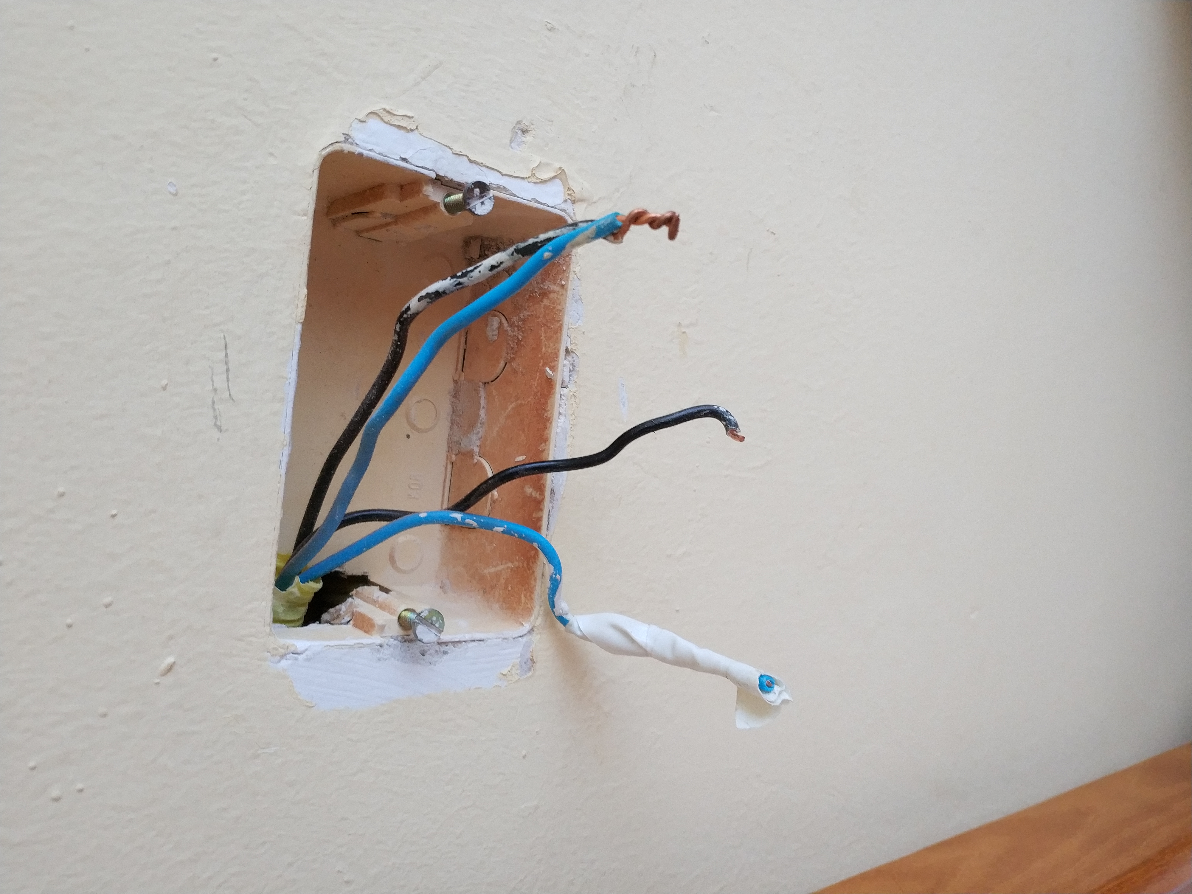 Acabo de mudarme a un piso de alquiler (bastante antiguo) y resulta que en un dormitorio, en uno de los míticos enchufes de mesilla de al lado de la cama no tenía nada (solo los cables). Los cables eran 4 (2 azules y 2 negros) alguien podría decirme si eso era un enchufe, un interruptor o ambos? en el otro lado de la cama sí estaba la instalación hecha y hay interruptor + enchufe.