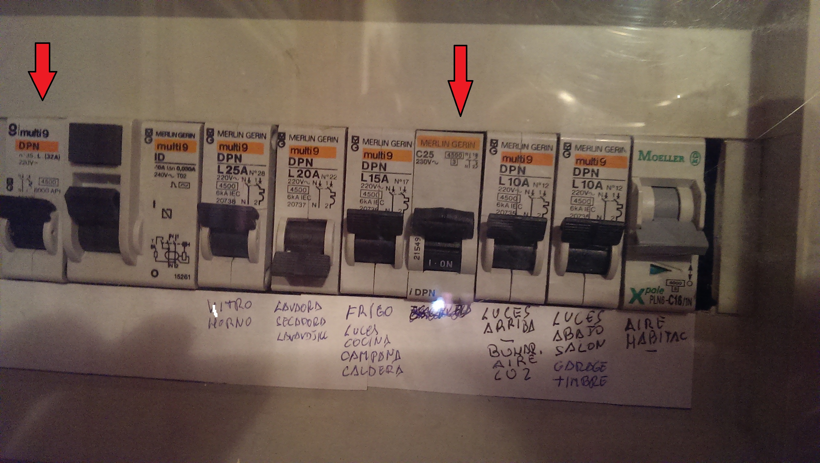 Estoy intentando localizar una derivación y veo dos interruptores que no se que son. Los he marcado en la imagen que adjunto, el primero corta toda la luz, y el de enmedio no corta nada. Alguien me puede aclarar para que sirven?