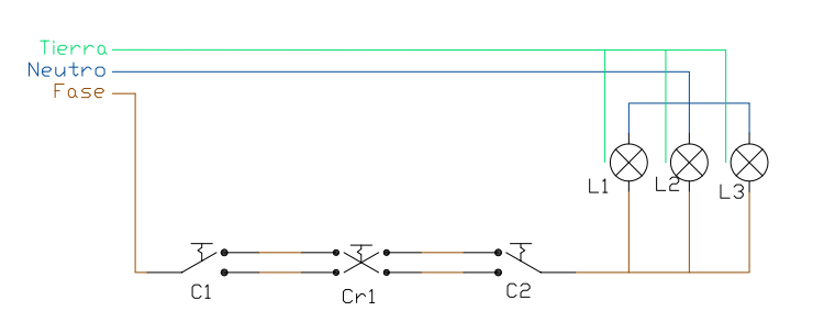 Quería saber como conectar dos conmutadores y dos cruzamientos para que al encender el primero me vaya al segundo y encienda el tercero y después el cuarto y a la inversa.