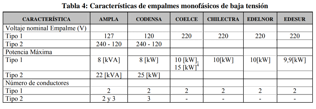 Tipo de red y acometida disponible con algunas Cias en latinoamerica.