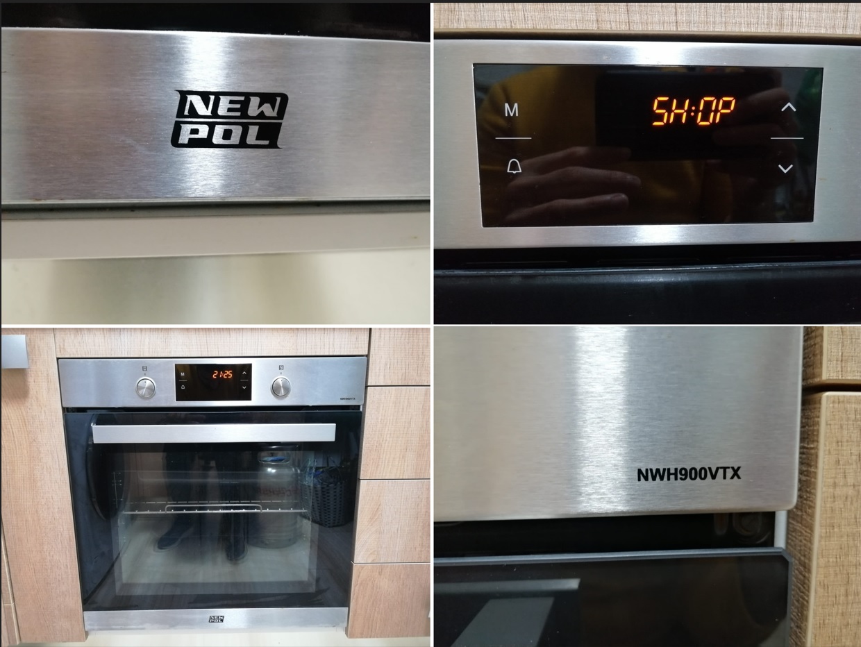 Os traigo un pequeño problema de este modelo de horno que me trae de cabeza: Llevo un año con él usándolo, y de repente, aparecen cada cierto intervalo de tiempo estas letras que sustituyen a la hora en el pantalla (SHOP), que me da la impresión de que es una especie de modo demo, en el que se enciende, me marca los pilotos, la temperatura que quiero poner... pero solo se enciende sin calentar nada. El libro de instrucciones no hace mención a este indicador y el resto de libros de instrucciones de otros modelos tampoco. De igual forma, no encuentro información de este modelo de horno en internet. Lo único que he probado ha sido desenchufarlo un tiempo y dejar pulsado el botón de alarma durante 10 segundos (es la solución que dan para otro tipo de electrodomésticos de la misma marca). ¿Alguien sabe la solución para este problema? ¡Gracias!