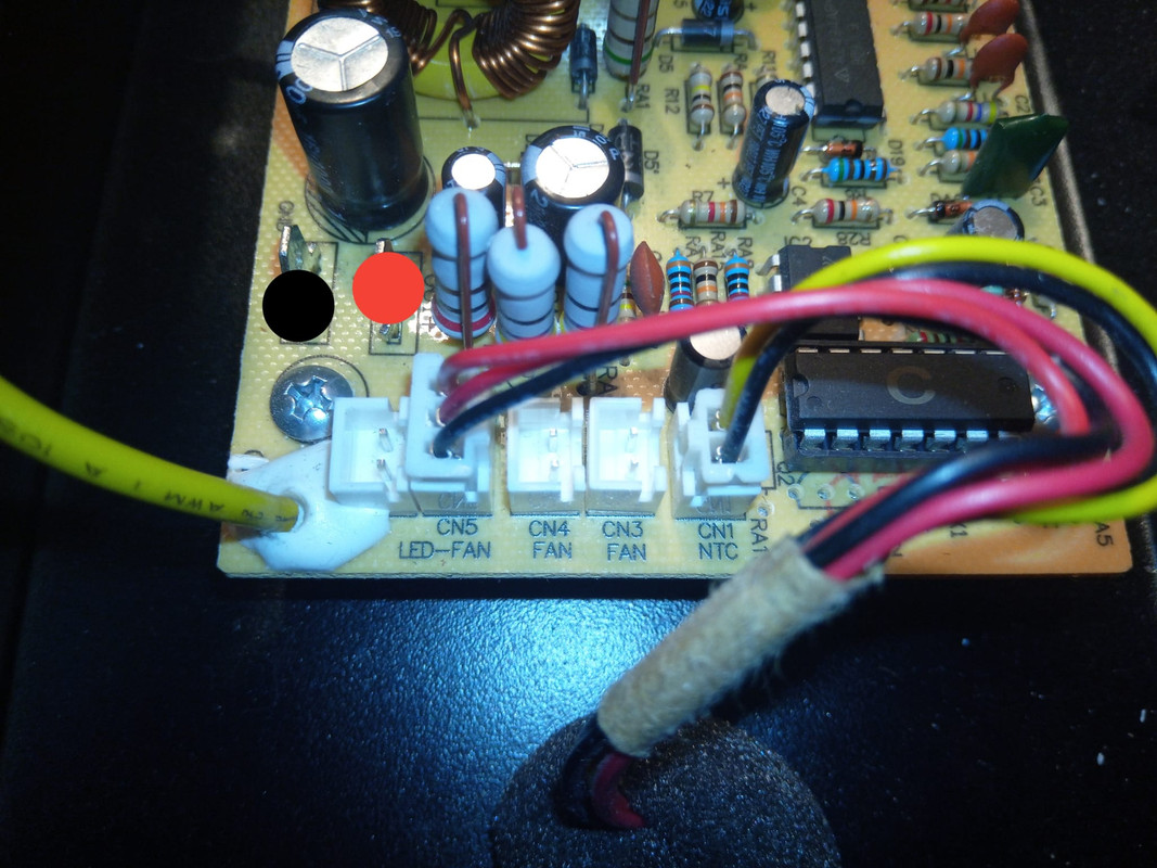 Donde están los puntos negro y rojo es donde se conecta la Peltier con los cables negro y rojo.