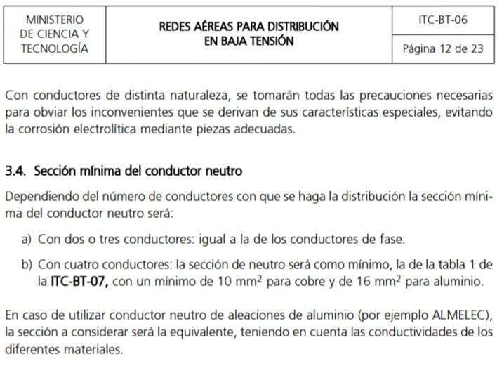 2 fases con neutro de 16mm2 admite 2x14,40kW