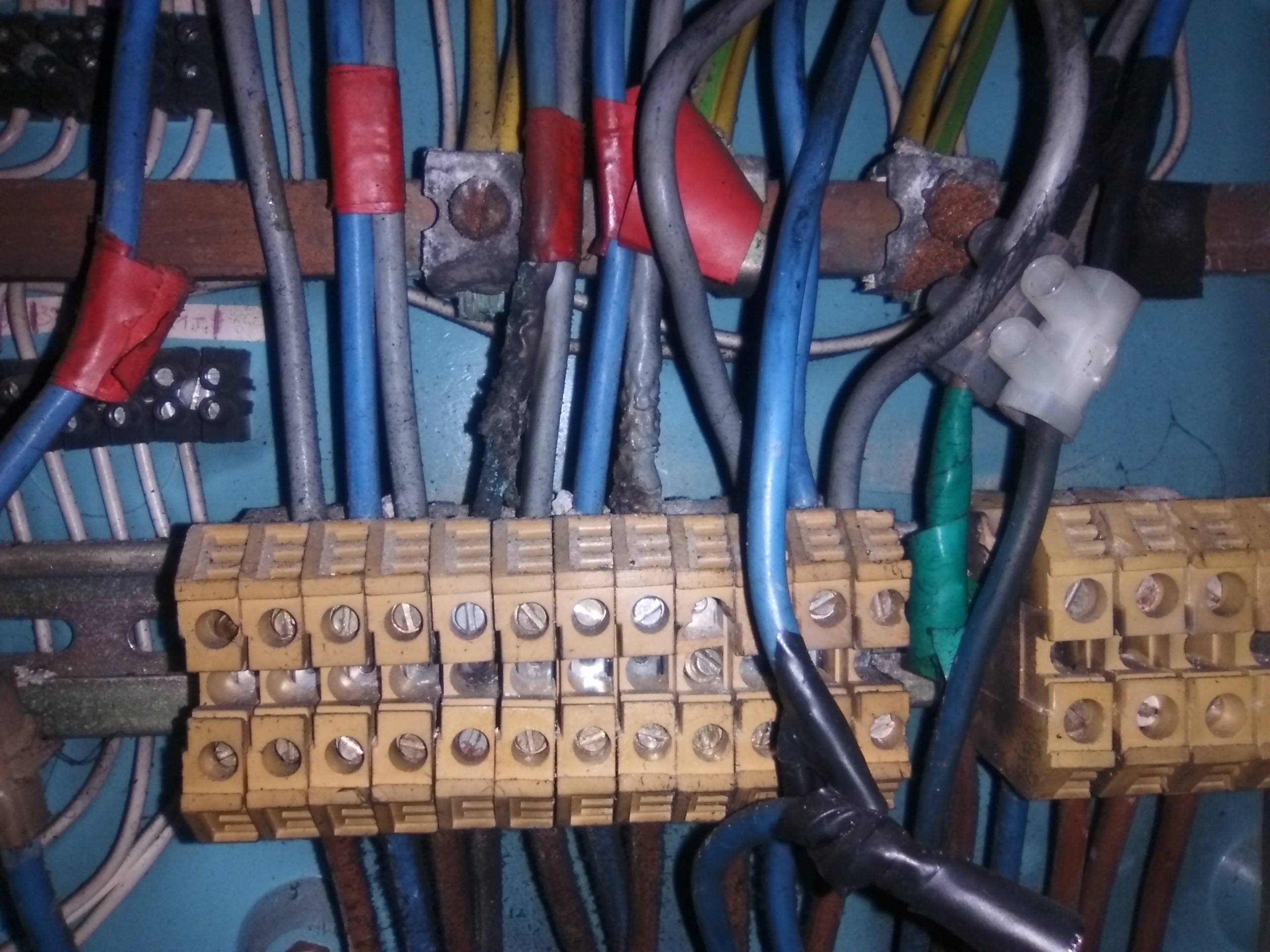 Lo que se hizo en otra ocasión que acudimos al cliente fue aumentar la sección de 2,5mm2 a 4mm2, instalar punteras y poner colores normalizados. pero para la avería y provisionalmente se hizo tal cual la foto.