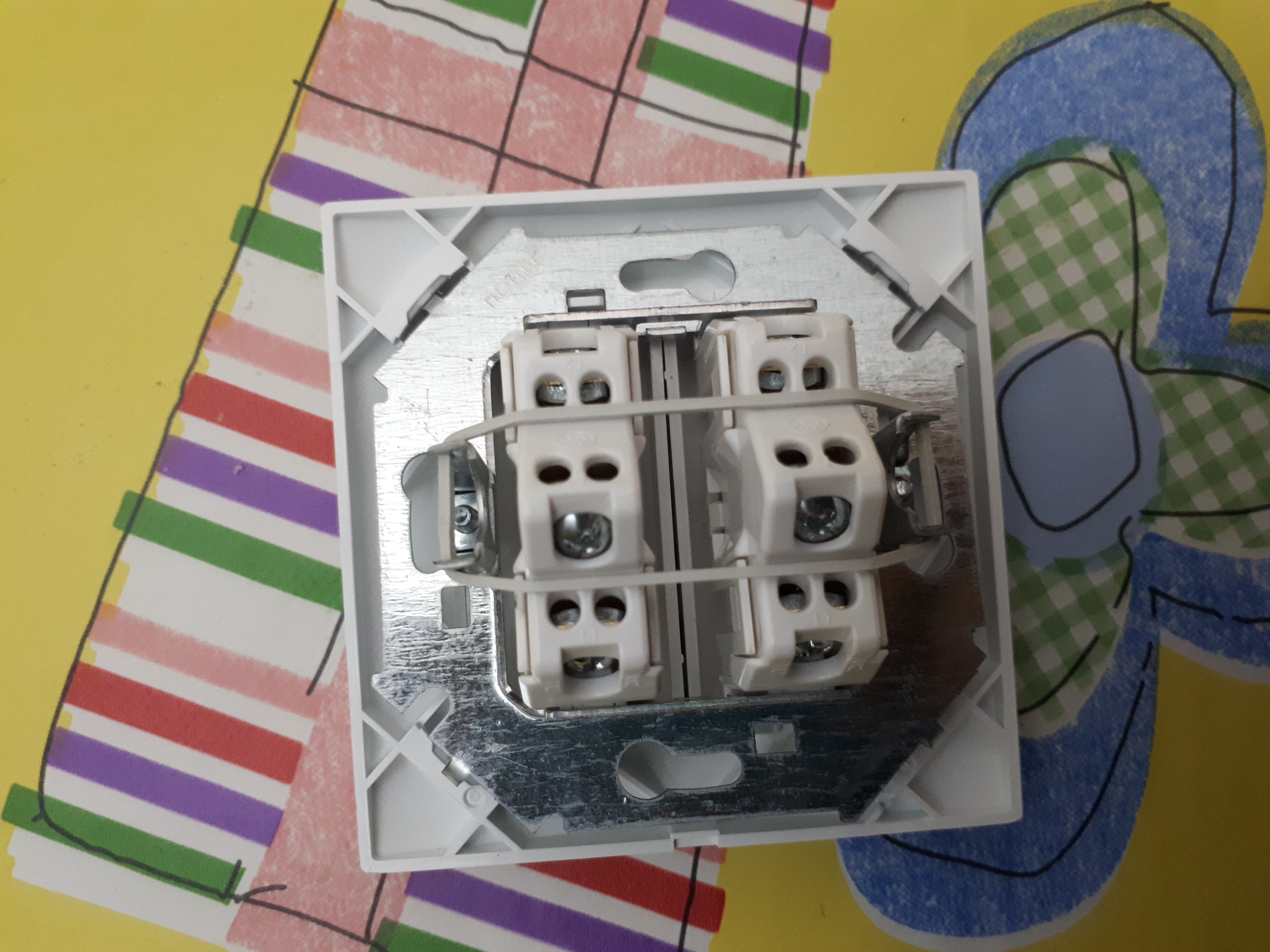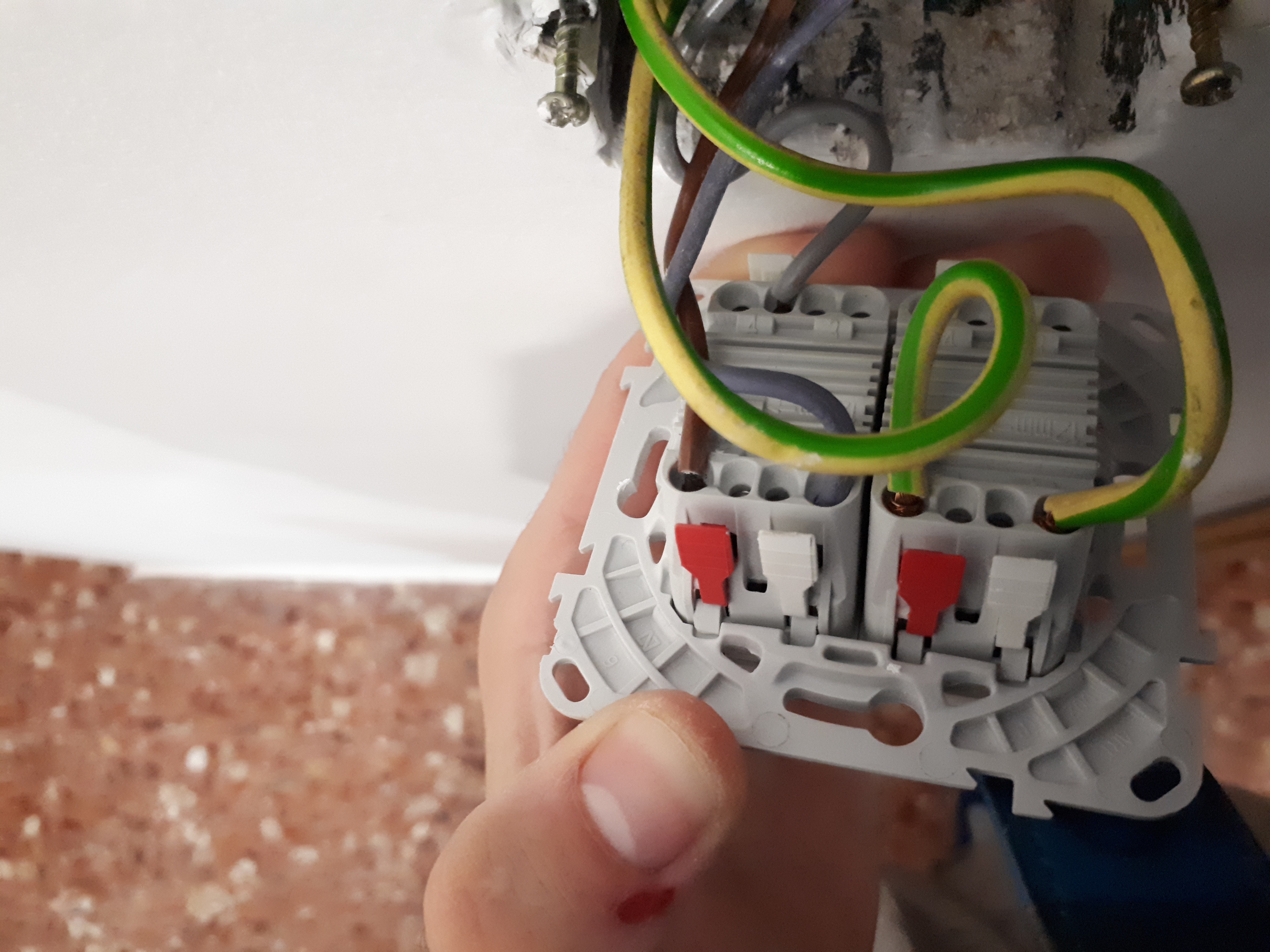 Para conectar ese conmutador conecta en un lado, el cable marrón en el centro y los grises arriba y abajo, y luego en el otro lado, conecta el verde-amarillo en el centro y el otro verde-amarillo en cualquiera de los otros dos.