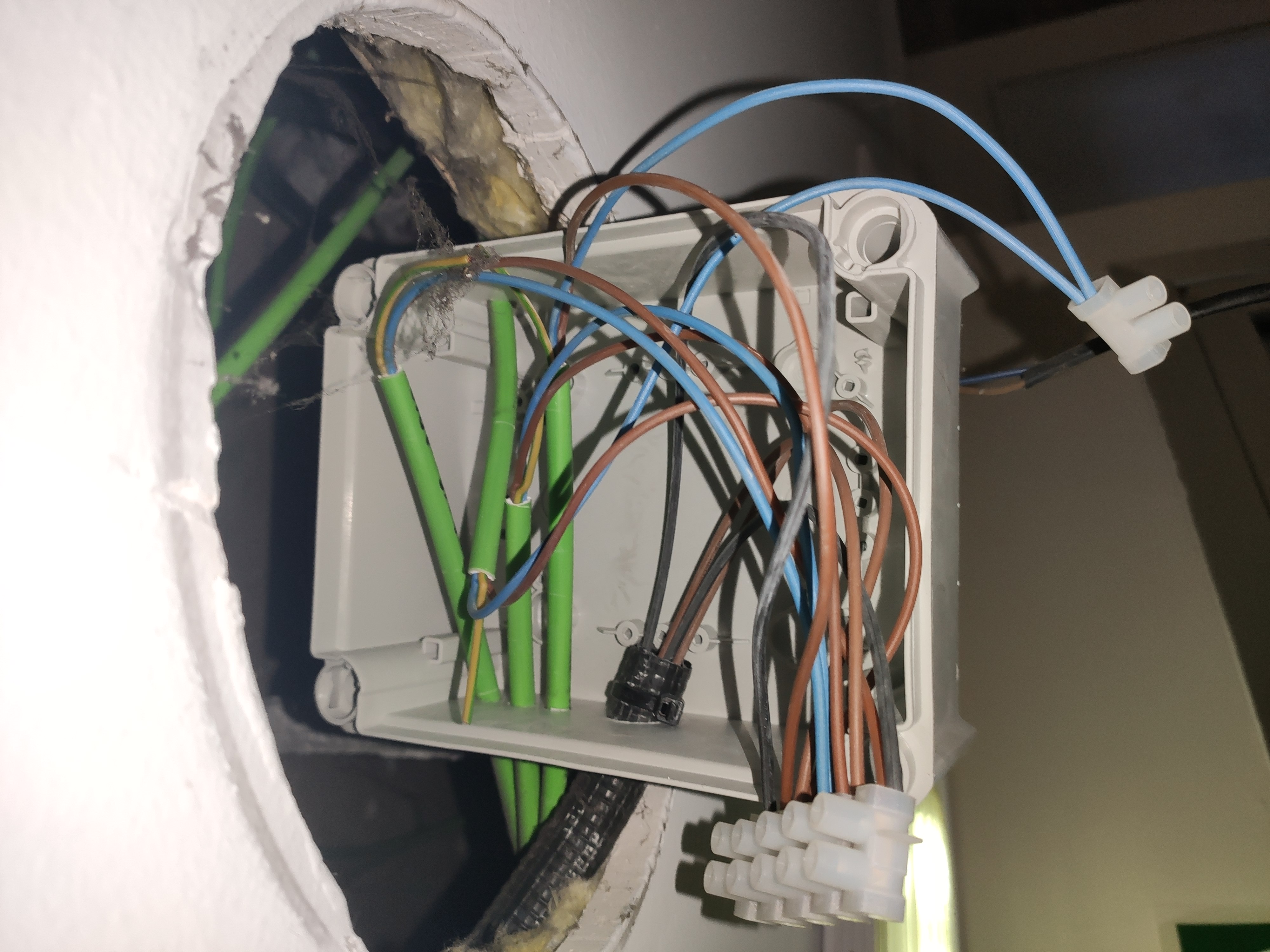 Los cables que van por el tubo corrugado entiendo que son dos fases que van a sus dos interruptores independientes con sus respectivos retornos.