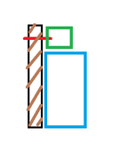 En azul la bañera, en verde la supuesta lavadora que ocuparía el sitio de un bidé. La electricidad la tendría que traer de la cocina por el muro.
