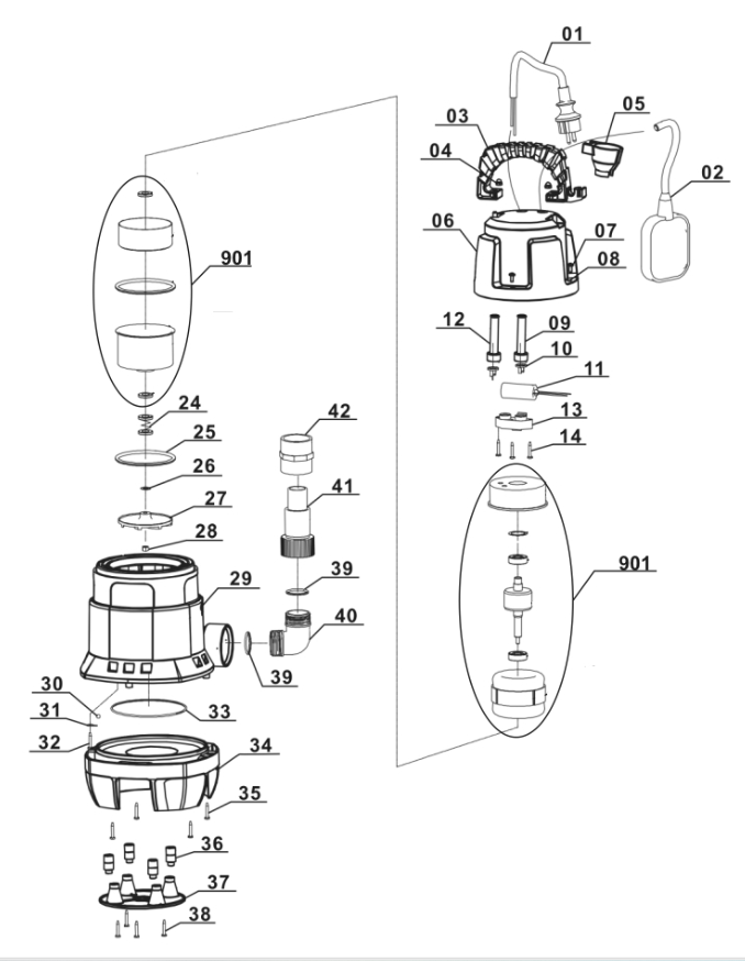 Yo quizás si pondría una boya con un zumbador, mas alta, pero para que detectase que la cámara de bombeo esta al borde de rebose