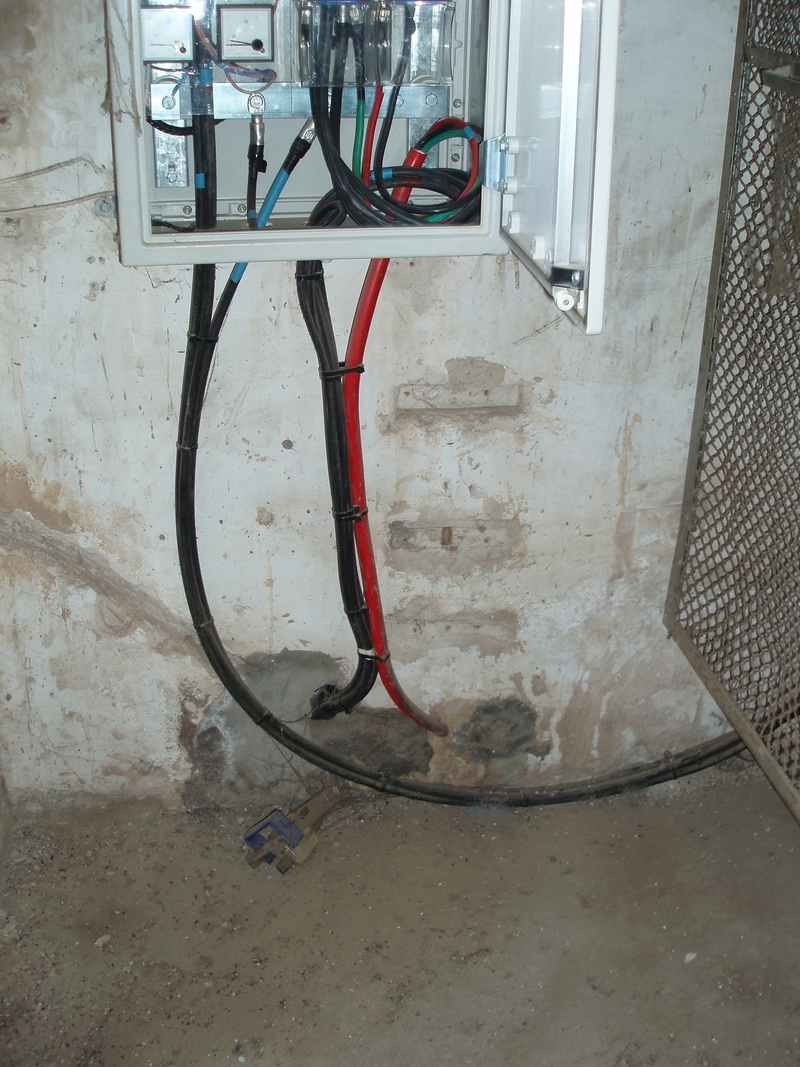 Los cables de la izquierda en la Y (negros ) son de aproximadamente 2,5 cm de ancho cada uno, dan servicio a quizas un motor de un pozo, 2 bombillas y poco mas.