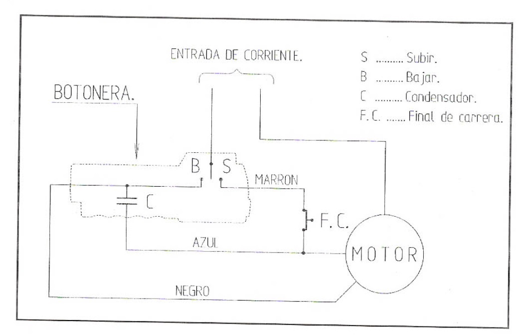 Este es el esquema de funcionamiento de un polipasto "tipo" con un solo final de carrera. Posiblemente a estos polipastos se