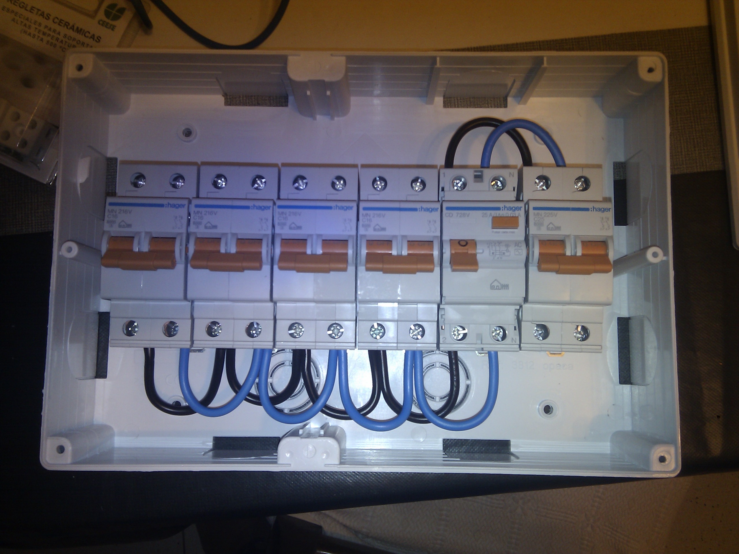 Podría haber quedado mucho mejor si pudiera mover el ICP, pero no he querido desprecintarlo de momento. Me han quedado 3 regletas a la vista, una entre acometida e ICP, otra entre manguera del horno y automático (porque no me llega) y otra para el timbre. Que por cierto, he intentado deshacerme de la regleta del timbre conectándola a la del horno, pero no consigo hacerlo funcionar bien, se queda en sonido constante.