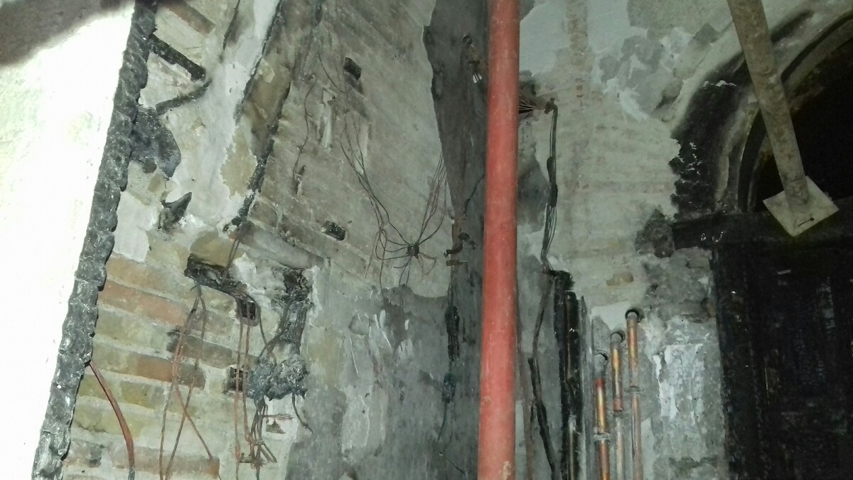 Debido a lo que hicieron en uno de los pisos, muy probablemente ciertas modificaciones eléctricas las hizo alguien no familiarizado con la electricidad y la ha liado gorda. A eso sumémosle una instalación antigua, con DIs en tubo bergman con cables delgados (muy típico en edificios antiguos en esta zona, a diferencia de Barcelona en donde era mucho más común el contador dentro del piso, con una LGA montante), una carga elevada y el desastre está servido.
