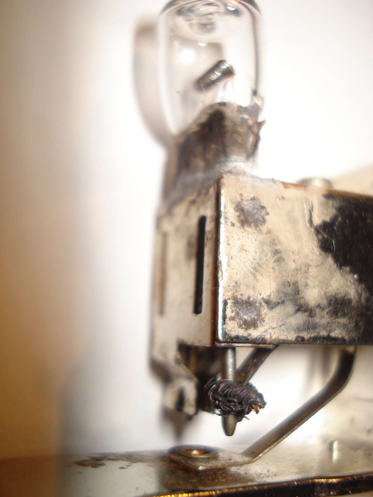 Tengo un proyector que utiliza una lampara halógena de 50W 12V. EL problema es que va montado en un cassquillo especial. Una de la pata de la bombilla debe hacer contacto con una lamina de chapa, He intentado soldarla con estaño pero se suelta al calentarse tanto. Como debería ser esa soldadura para que aguantar tanta temperatura ? Gracias