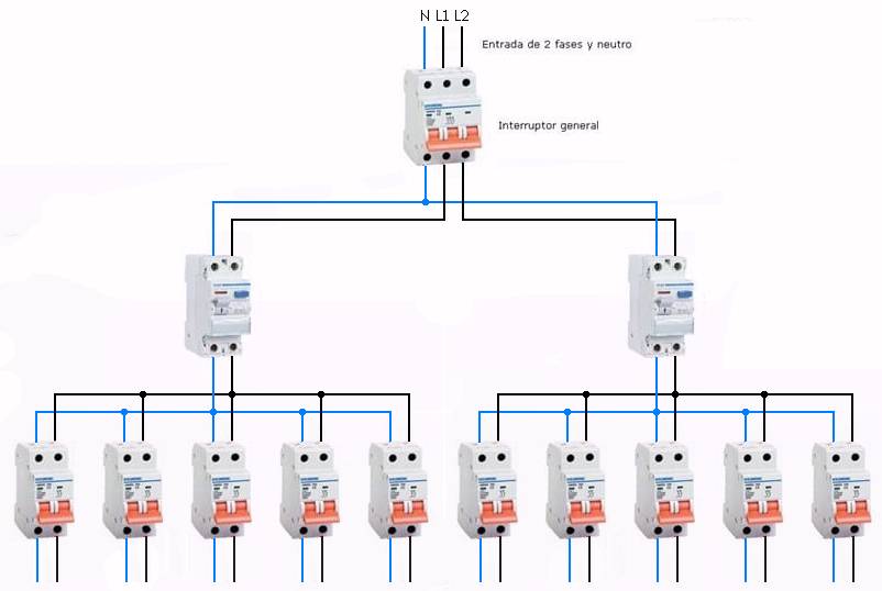 Volviendo al tema de la electricidad bifásica, el reglamento menciona las lineas de 2 fases y neutro, en el apartado donde se trata la sección del neutro, que para estas lineas debe ser igual a la sección de las fases.