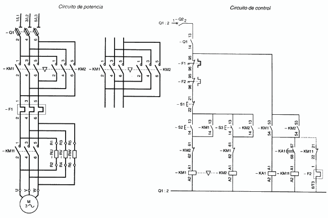 Hola a todos. Como el mismo nombre del mensaje indica, necesito algunos esquemas de mando y potencia para arranque de motores trifásicos. Cuantos más mejor. Es para hacer una presentación de PowerPoint, por lo que cuanta más información mucho mejor.