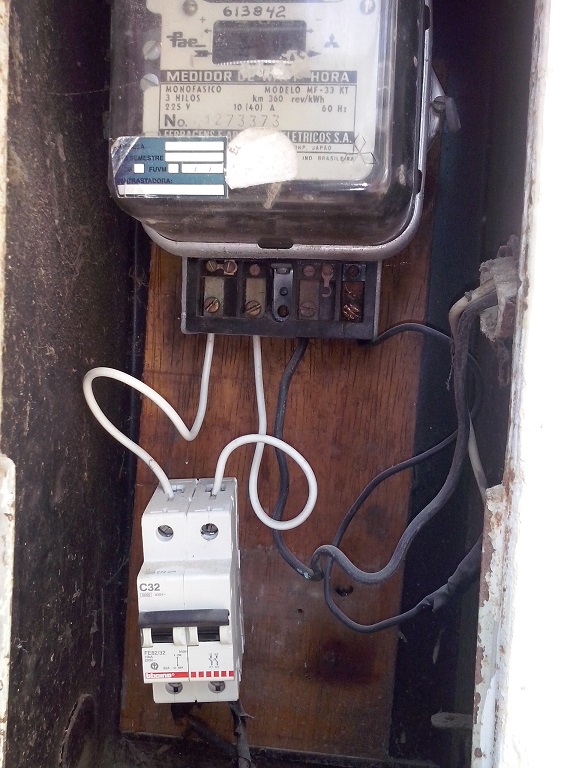 Dicho esto, les paso a contar mi primer gran problema: Al buscar con un buscapolos la fase y el neutro en los cables, tomacorrientes y hasta en el contador, la luz del buscapolos se enciende en ambos. Como si a la casa llegasen dos fases, pero sin neutro. Además, la casa no tiene una conexión a tierra. Ni siquiera tiene diferencial. En la caja principal tan solo hay dos llaves termomagneticas: Una de 40A y otra de 25A. La corriente llega desde el contador a la llave de 40A y de alli pasa a la llave de 25A. De allí salen 4 cables. Dos se van al primer piso y los otros dos al segundo y tercer piso. Ya les adjuntare fotos de todo este embrollo.