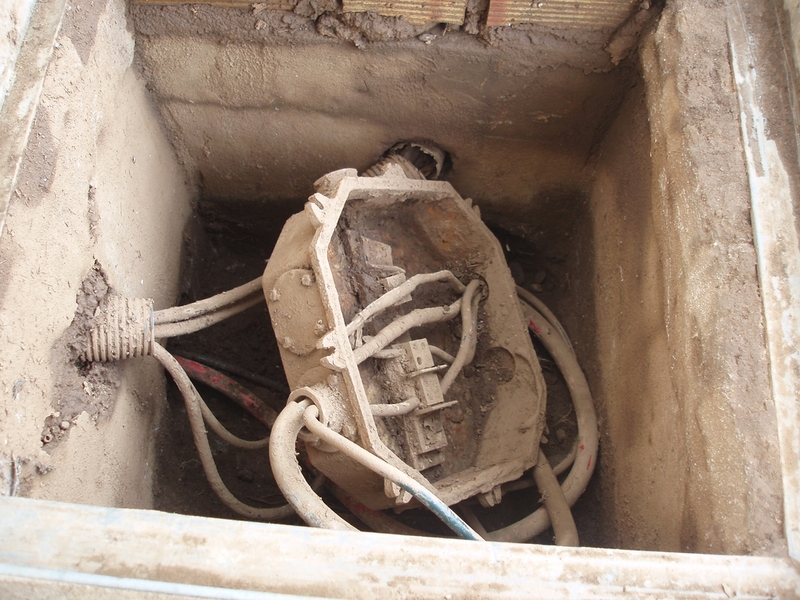 Esta es la primera arqueta que viene del trafo donde estas los cables que dan suministro a 10 casas (circulo amarillo).
