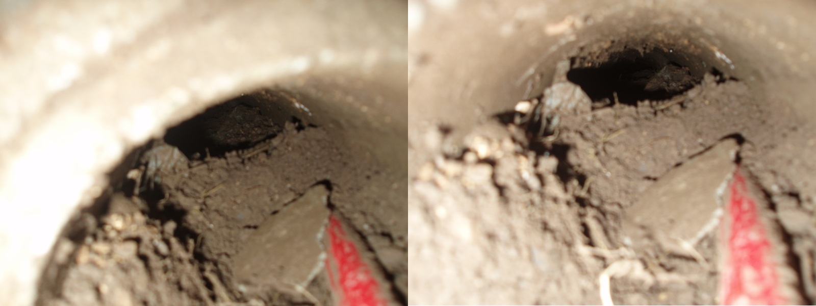 Como se puede ver con excesiva claridad estos cables estan cuarteados de manera brutal y del ultimo calenton el negro se ha jodido algo mas y no creo que ninguno de los tres duren mucho, de hecho estoy a la espera de que se vaya la luz (circulo rojo).