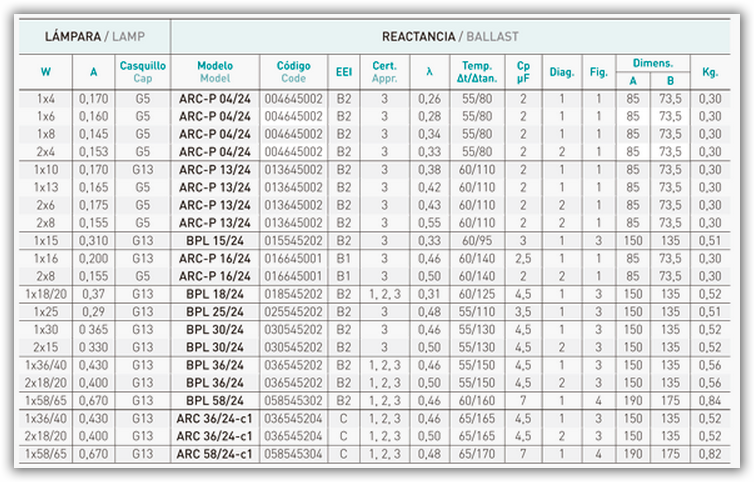 Mira en la luminaria y coge los datos del balasto.