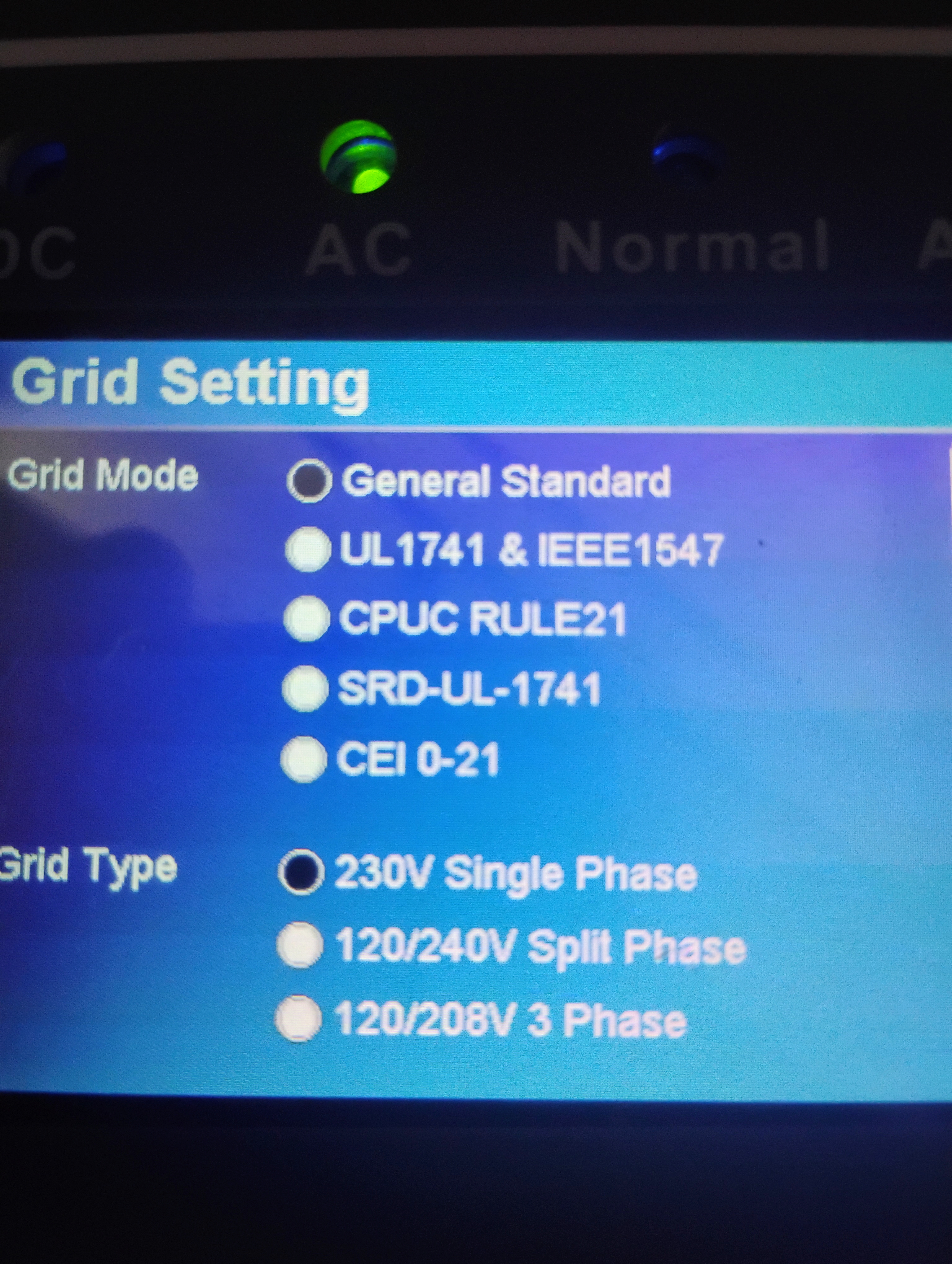 tambien encontre esto donde recomienda resetear el inversor a los valores de fabrica, pero no es del modelo de tu inversor, entonces creo que es mejor ir por pasos. Veamos la configuracion.