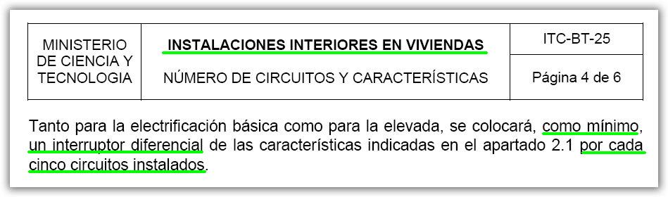 El tema de un diferencial cada cinco circuitos sólo lo menciona en las instalaciones de viviendas tipo, la básica y la elevada.