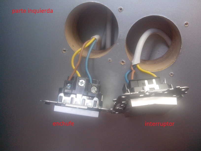 Asi que he decidido soltar los enchufes y los interruptores y os pongo las fotos del lio que creo que hay montado. Creo que los interruptores tienen que ser enchufes, y que en un enchufe hay conectados los cables de la lampara. Podria poner en el lado izquierdo dos interruptores y en el derecho un interruptor, un enchufe y la toma de enchufe que sobra con cinta aislante? Lo que me extraña esque los interruptores funcionan, mal, pero encienden la luz si no la doy de la puerta...