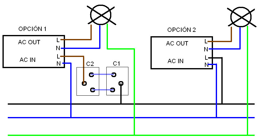 Tengo una instalación con dos conmutadores simples para encender unas luces de la calle.